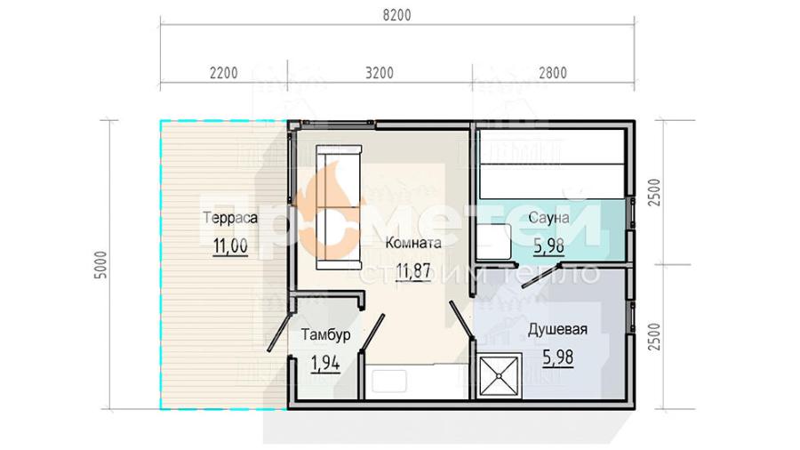 Реализованный проект Каркасная баня Норд 2.5x5 метров