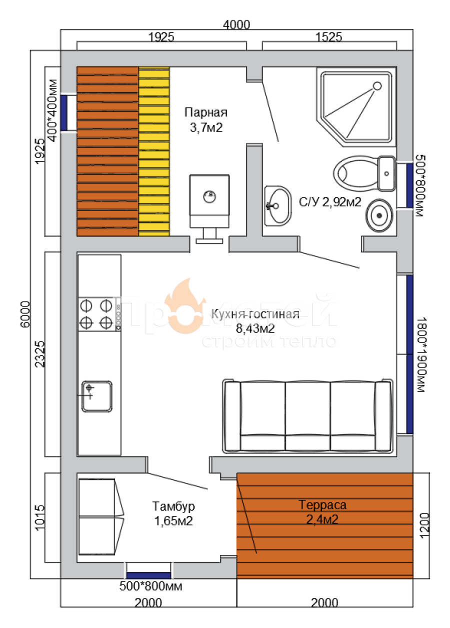 Потолок, стены, полок отделываются материалом кедром сибирским. Волокна древесины лежат так близко тем самым не пропускает влагу во внутрь древесины. Кедр выдерживает перепады температуры и влажности, при этом не трескается, не выгибается. При нагревании в парной выделяются эфирные масла. Так же можем предложить отделку липой, осиной, абашем, канадским кедром.