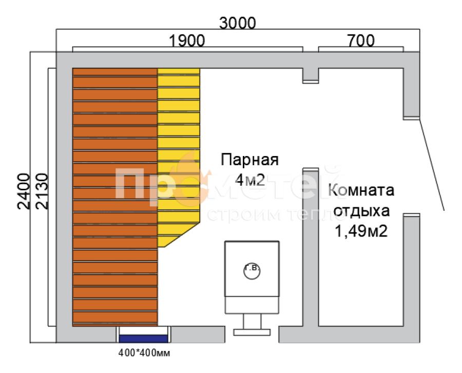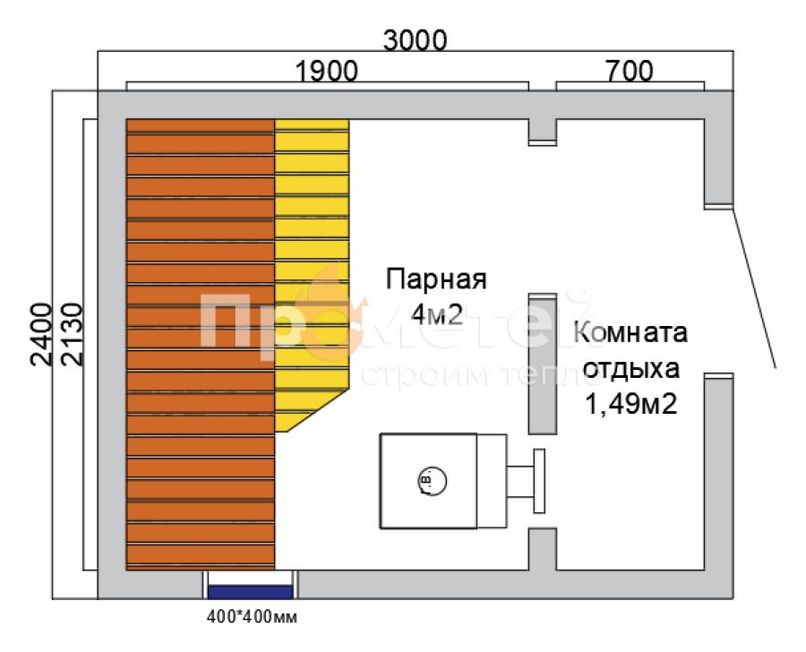 Каркасная баня Дача мини подойдет для тех кому необходима исключительно парная. За счет своей мобильности, баню можно разместить на самом маленьком участке.