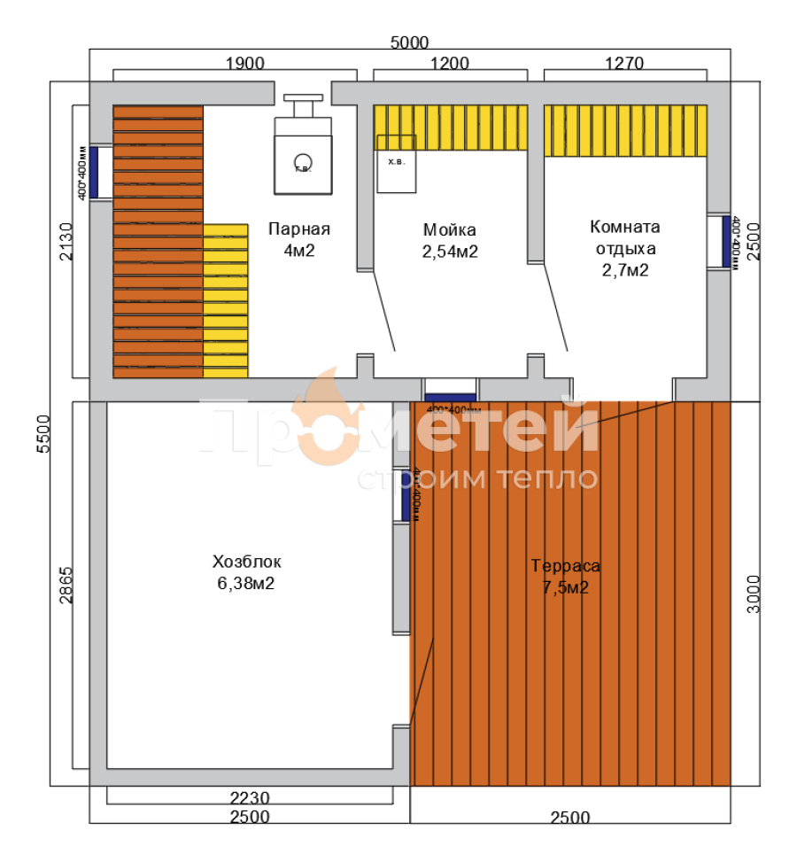 Стены, потолок отделываются вагонкой штиль Лиственница. Выбор пал на материал лиственница так как она характеризуется высоким содержанием смолистых веществ и поэтому высокой стойкостью к гниению. Её реакция уникальна на воздействие влаги – древесина лиственницы не только не портится, но и приобретает новые качества: прочность, долговечность и неуязвимость к грибкам.