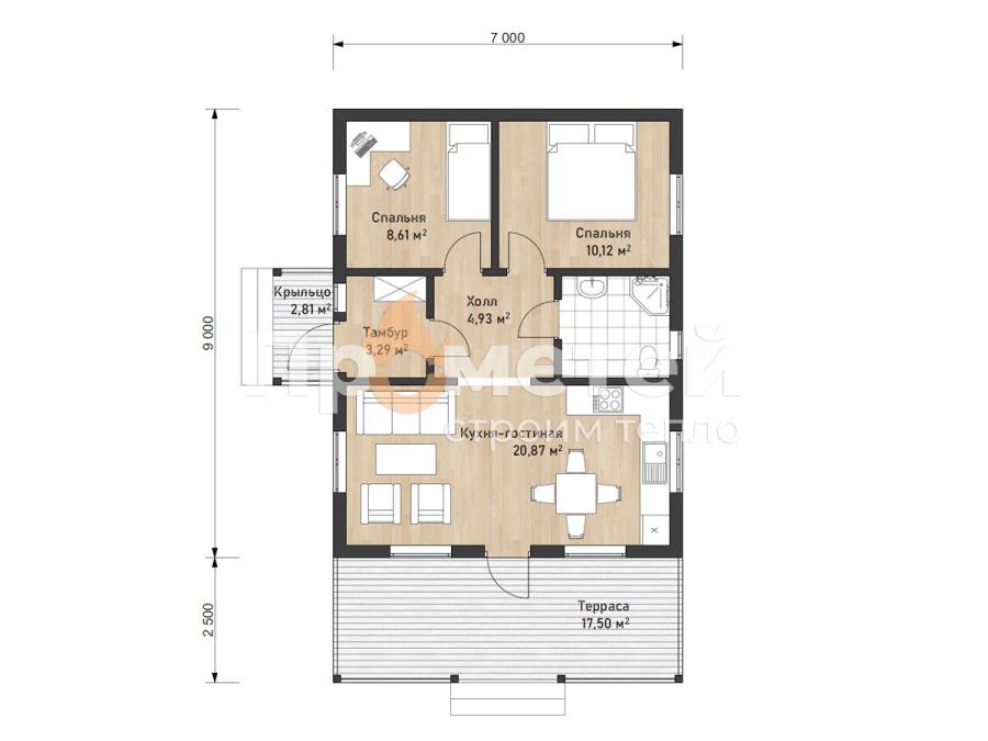 Каркасный дом 7x11.5 | 83м², 1 этажный под ключ