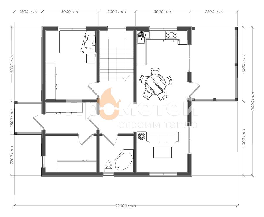 Каркасный дом 8x8 | 140.7м², 1.5 этажный под ключ