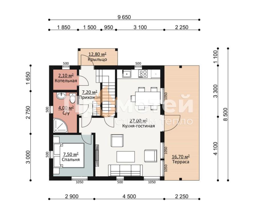 Каркасный дом 9.65x8.5 | 139м², 1.5 этажный под ключ