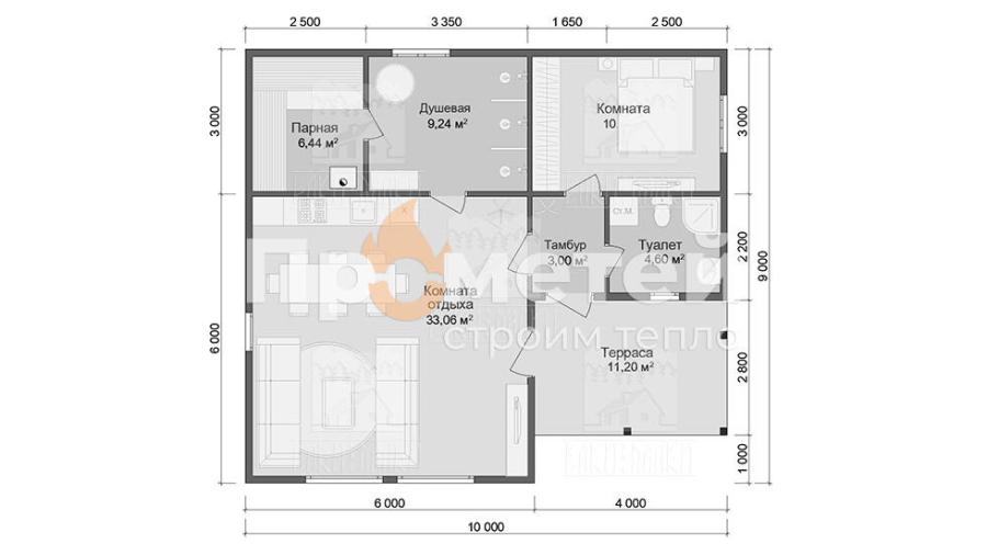 Каркасный дом-баня 10x9 | 86м², 1 этажный под ключ