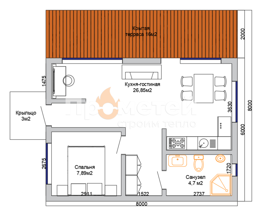 • Общая площадь 48 м²