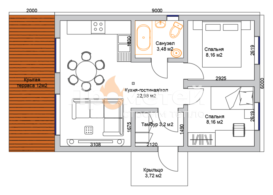 • Габариты 3,2х9 м