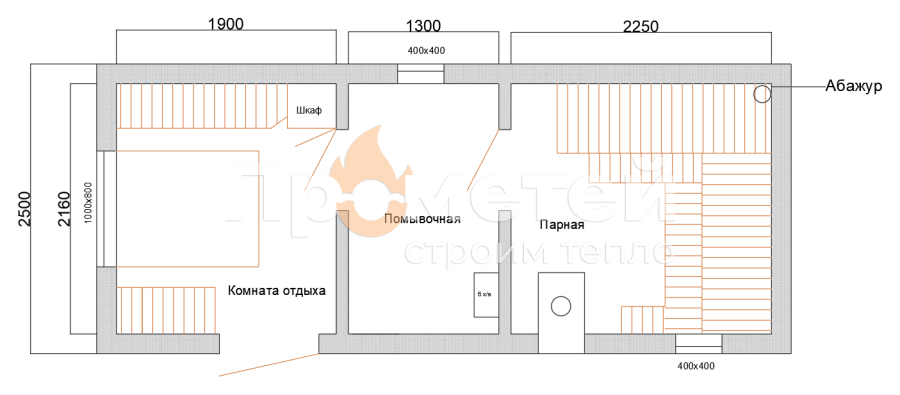 Реализованный проект Каркасная баня Норд 2.5x5 метров