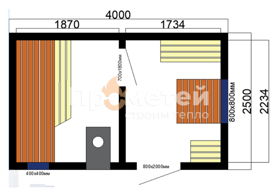 Каркасная баня Норд 2.5x5 метров