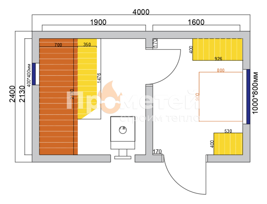 Потолок, стены, полок отделываются материалом кедром сибирским. Волокна древесины лежат так близко тем самым не пропускает влагу во внутрь древесины. Кедр выдерживает перепады температуры и влажности, при этом не трескается, не выгибается. При нагревании в парной выделяются эфирные масла. Так же можем предложить отделку липой, осиной, абашем, канадским кедром.