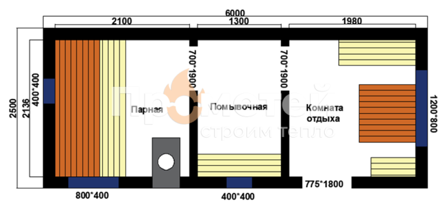 Реализованный проект Каркасная баня Норд 2.5x5 метров
