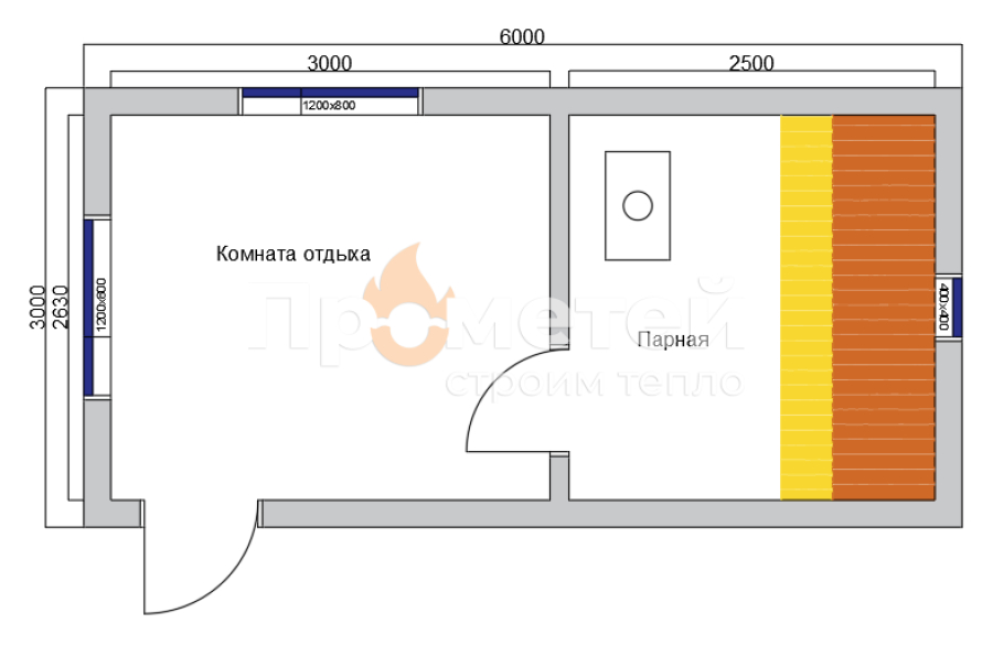 Каркасная баня Норд 3x6 метров