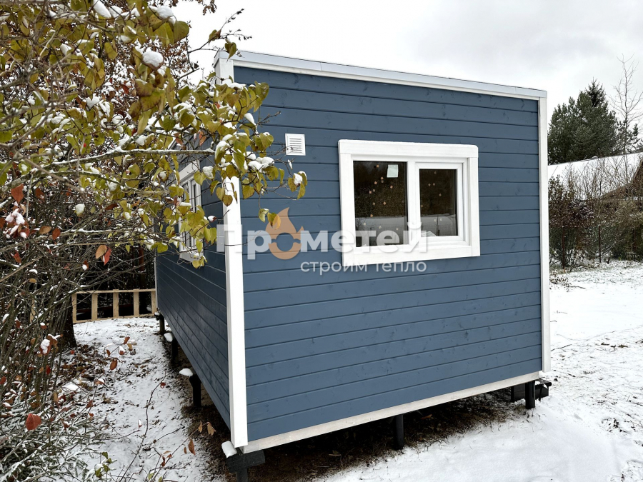Мобильная Каркасная баня, размер 3х6 метров. Вместимость бани до пяти человек. Установка бани в СНТ Звезда. Баню установили на подготовленный нашим подрядчиком свайно-винтовой фундамент.
