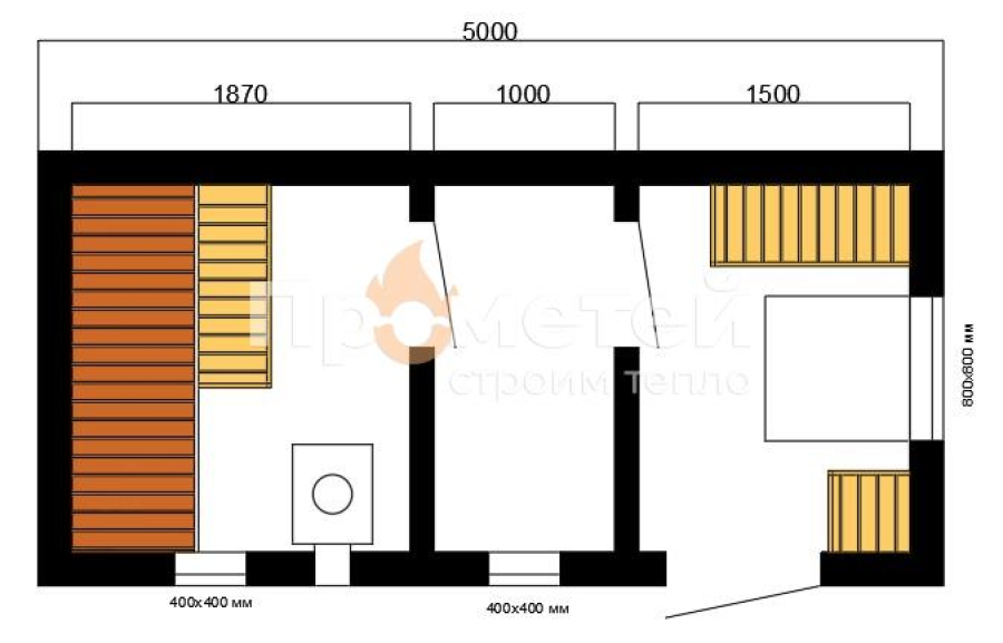 Каркасная баня Норд 2.5x5 метров
